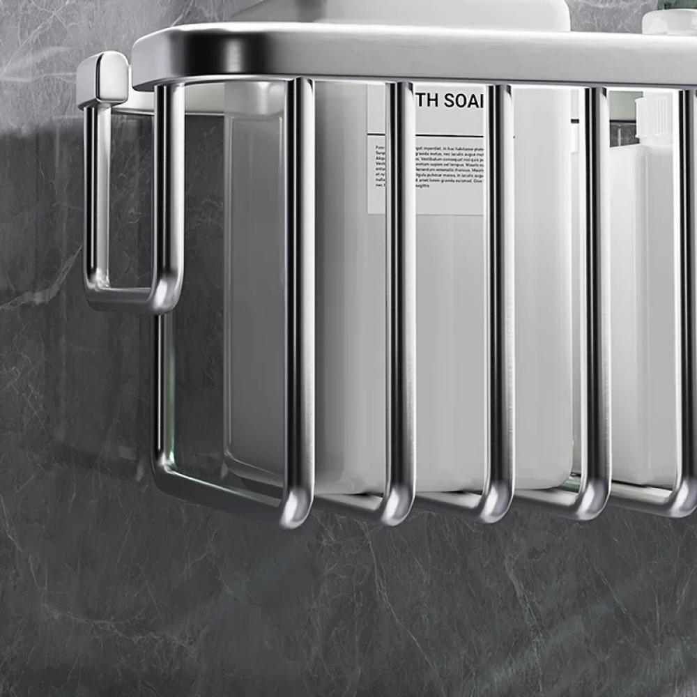 رف تخزين الحمام المعلق هو حل عملي وأنيق لتنظيم إكسسوارات الحمام بشكل مرتب. يتم تثبيت الرف على الحائط بشكل محكم، مما يوفر لك مساحة إضافية للتخزين في الحمام دون الحاجة إلى مساحة أرضية إضافية.هذا الرف مثالي لتخزين بلسم الشامبو والزيوت والعطور وغيرها من المنتجات المستخدمة في الدش، مما يسهل الوصول إليها أثناء الاستحمام. يتميز بتصميم مريح مع مساحة كبيرة لتخزين العديد من الإكسسوارات بشكل منظم وآمن.مصنوع من مواد مقاومة للرطوبة، الرف يوفر لك حلاً دائمًا للحفاظ على ترتيب الحمام والحد من الفوضى. بالإضافة إلى أنه سهل التركيب ويضيف لمسة عصرية لأي ديكور حمام.يمكن استخدامه في الحمام أو حتى في المطبخ لتخزين مستحضرات التنظيف أو أدوات أخرى، مما يجعله قطعة عملية وضرورية في المنزل.